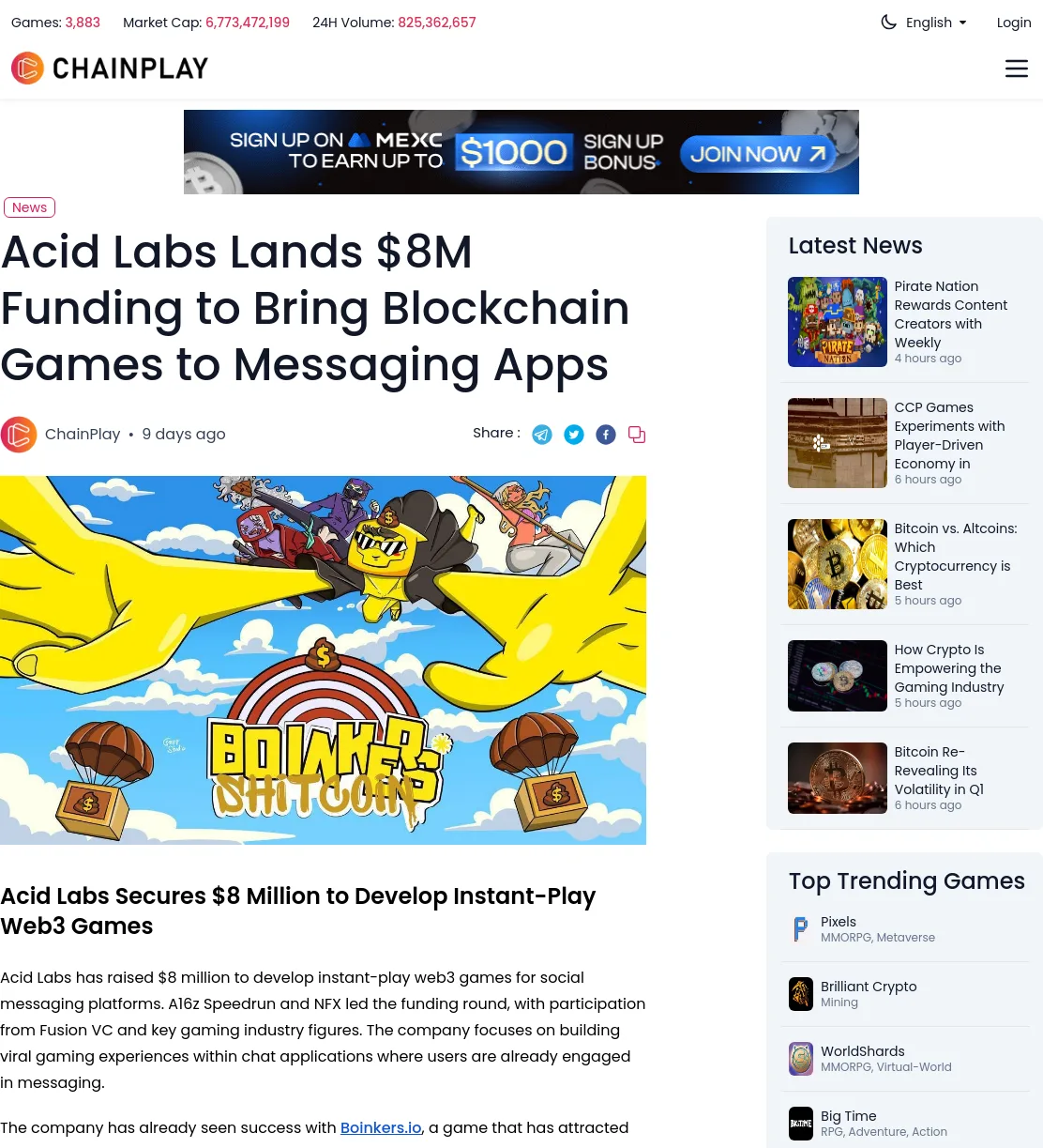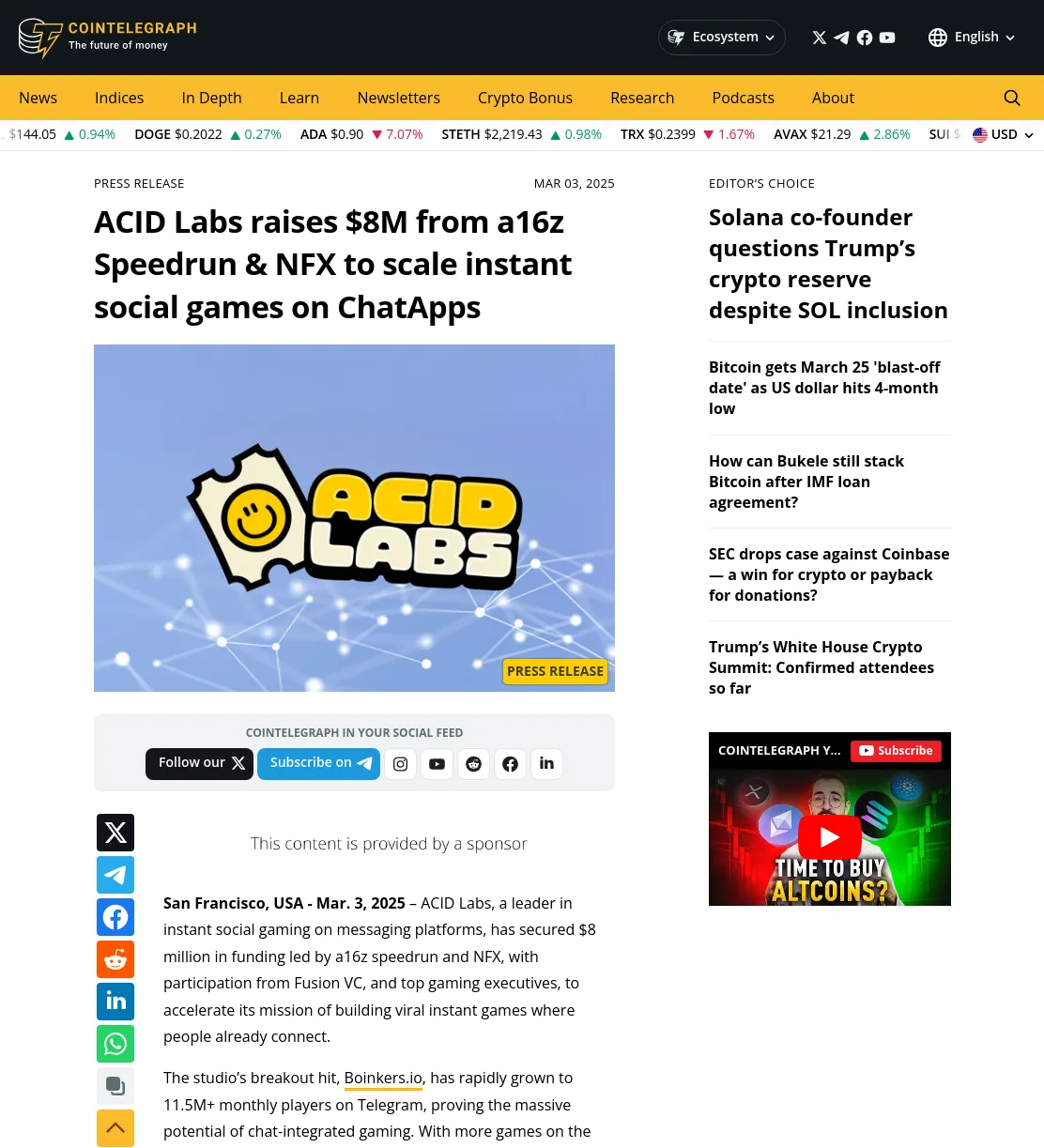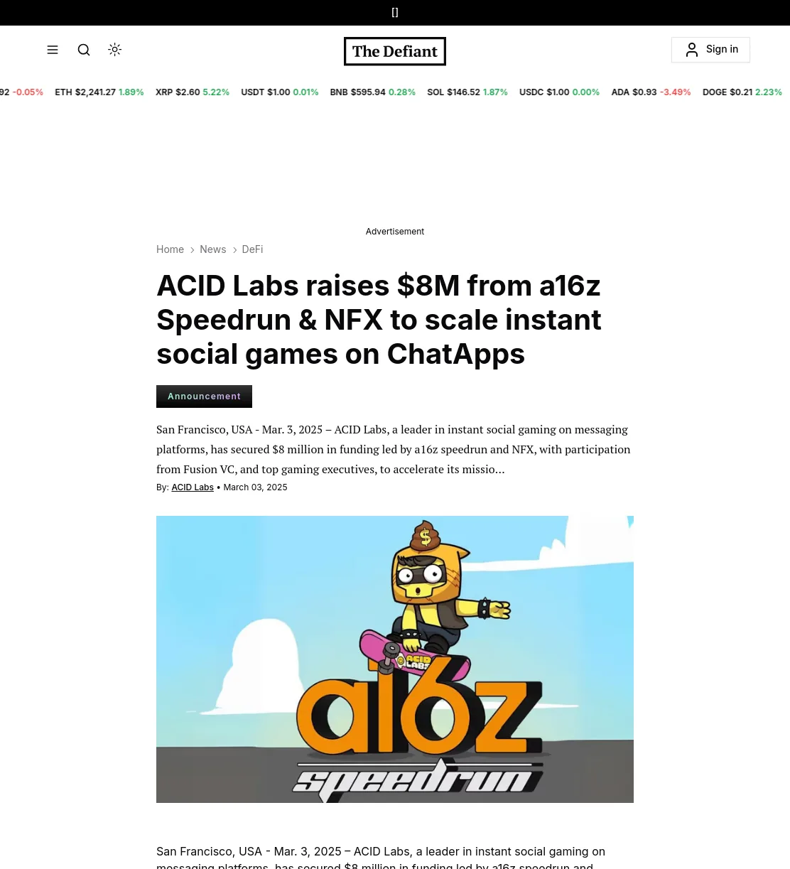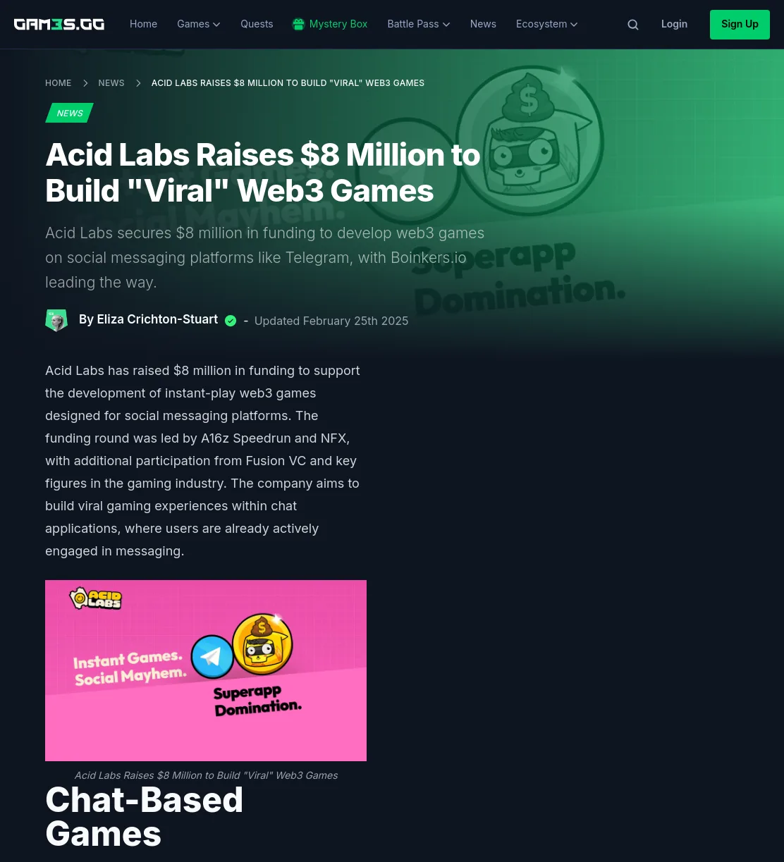 We leveraged the credibility of az and NFX's involvement to instantly capture editors' interest. Thanks to these efforts and a compelling story, the Acid Labsfunding news quickly gained traction among top-tier media. Within weeks, journalists were running with the story, excited by the fusion of chat-based gaming andblockchain in a way that hadn't been widely covered before.